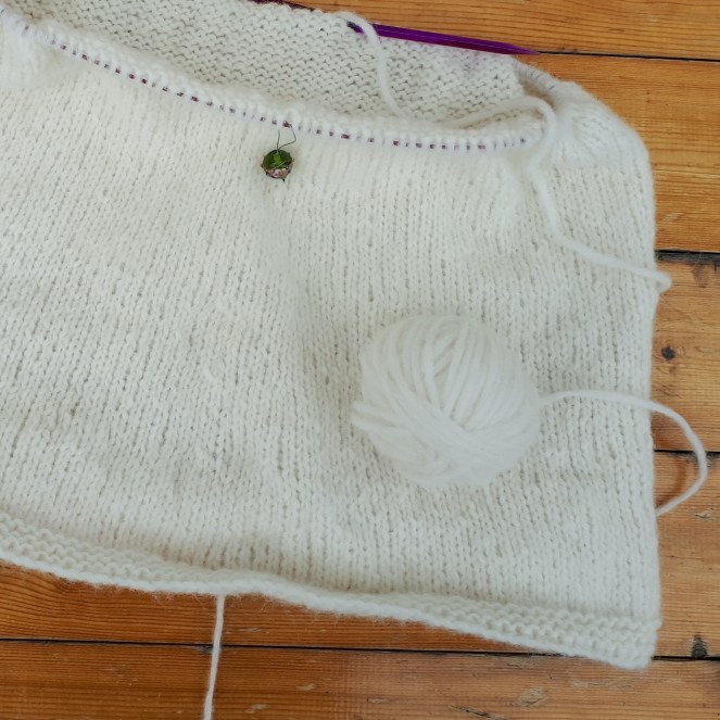 På pysselfronten har det ändå hänt en del. Jag har stickat och sytt så fort jag fått tillfälle, det är ju så bra för välmåendet. Det känns som att jag påbörjat en miljon saker och kanske fått klart fyra. Det ska bli roligt att visa upp allt nytt så småningom. Bland annat den här tröja har äntligen blivit klar.